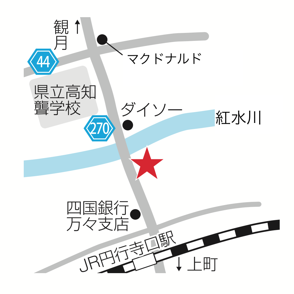 とさでん交通「円行寺分岐」下車 、徒歩1分 。